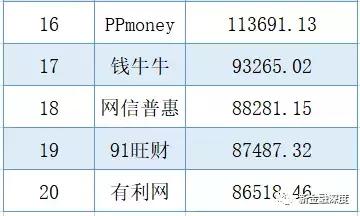 中国互金协会最新数据显示,目前共有95家平台报送了12月运营数据。新金融头条发现,截至12月末,这95家平台的累借贷金额为41574.72亿元,当月借贷成交额达724.33亿元。其中,累计借贷金额排名前20的平台在12月合计撮合596.61亿元,占当月成交额的82.37%。实际上,资金净流入在2000万元以上的p2p平台中,三分之二的平台在网贷之家网贷平台发展指榜单中位列前30名。