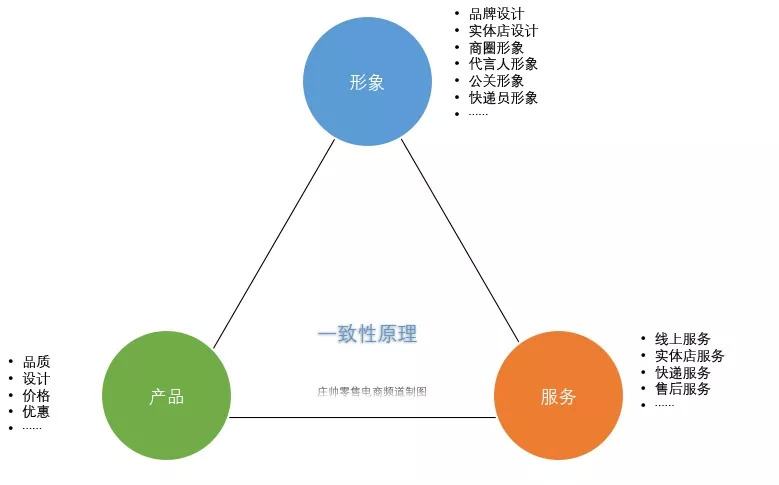 从上图可以看出,一致性原理一共涉及三大模块:形象、产品和服务,每个模块都包含了非常多的子项。