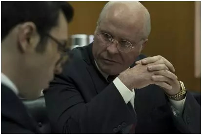 克里斯蒂安则在本次表演中,他有意隐去或弱化那些浮于表面的东西,在“形似”与“神似”当中寻找平衡。比如在副总统标志性的“咧嘴说话” 这个细节,他在筹备阶段很快把握住了这个风格化的动作,“但是我很快意识到如果我太关注于这个方面,整个表演很快就会失去新鲜感或者成为一种低劣杂耍的把戏。所以他不得不把它生活化,虽然不可避免有我自己生活的印记,但是却让整个表演更加精致内敛。我发现副总统先生的脖子是很有特色,于是我让化妆师帮我把脖子增大了好几英尺,做了一个”假脖子“,它会给你一种不可撼动的威严。”