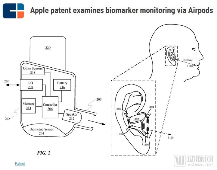 除了iphone和Apple Watch外,Airpod被认为是苹果公司下一个将应用于健康领域的硬件。苹果已探索其Airpods是否能够捕获生物识别数据。通过将Airpod压在内耳上,一项专利表明该设备可能捕获内部温度、心率和VO2(氧气消耗量)。
