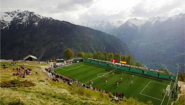 关于足球场的事你可能听说过不少,比如位于瑞士2000米高山上的奥特马-希斯费尔德球场。