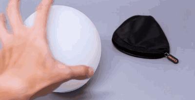 与此同时,这样的设计也赋予它可折叠的属性,只需将灯模组取出,双手挤压两侧便能快速“放气”,折叠成三角形收纳在附赠的三角包中。