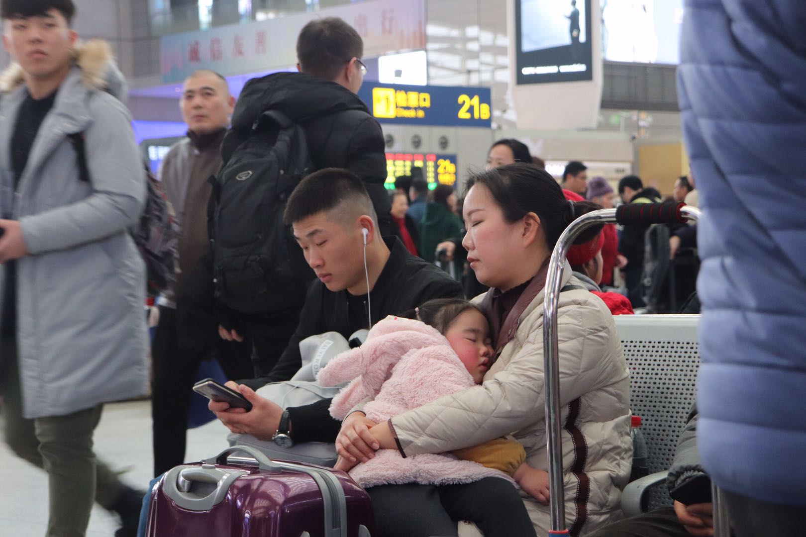 在上海虹桥站候车室的向女士将搭乘G1363列车从上海到长沙,她要带两岁半的女儿回到湖南怀化县城老家过年。由于住在崇明岛,为了准时到达车站,向女士今天早上3点40分就起床了,先坐了半小时的公交到南门客运站,再坐了两小时到大巴到地铁站,最后又坐一小时地铁才到上海虹桥车站。