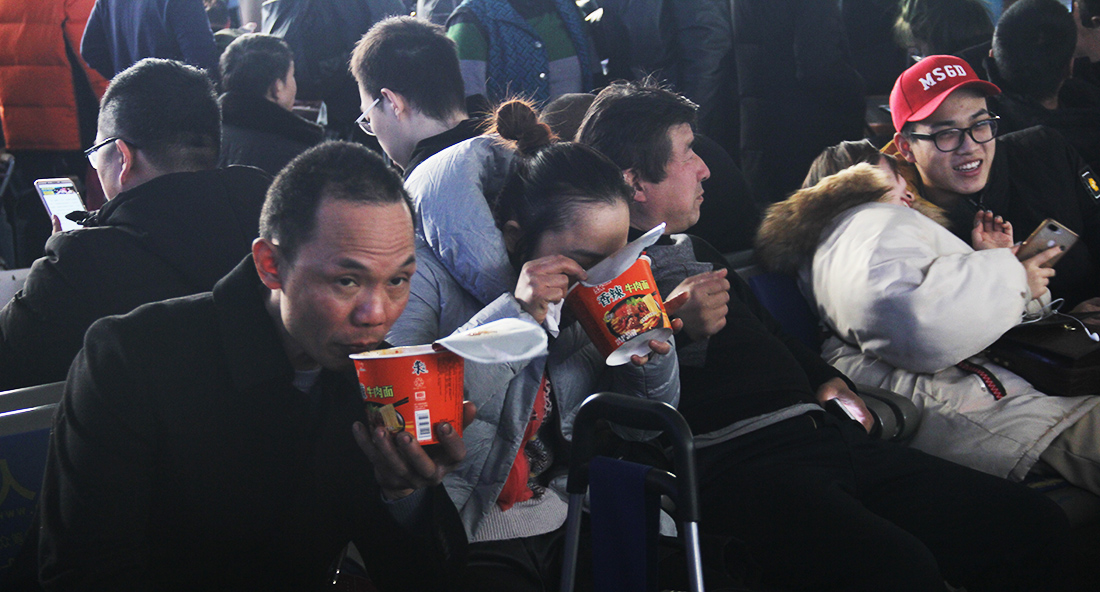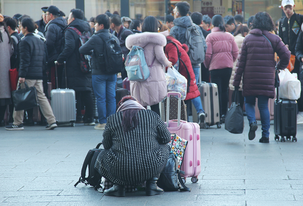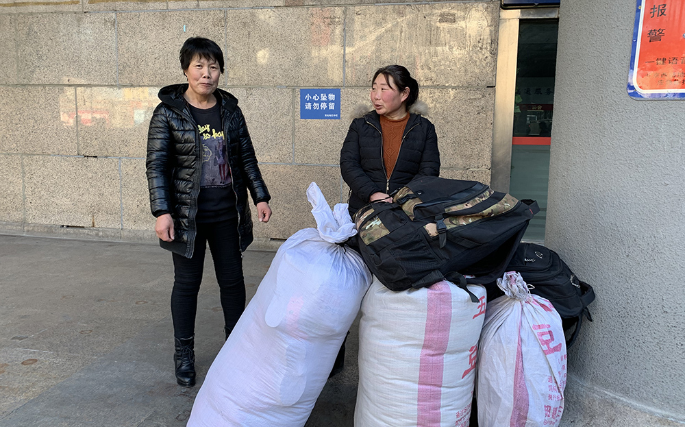 两位阿姨在北京打工,带着大包小包赶回河南老家过年。虽然火车是晚上8点钟才开的,但下午2点她们就已经到了北京西站。“交通太高效了,在家里坐不住。”其中一位阿姨说。她们的票是叫别人帮忙在网上买的,由于回家时间较早,所以并不难买。