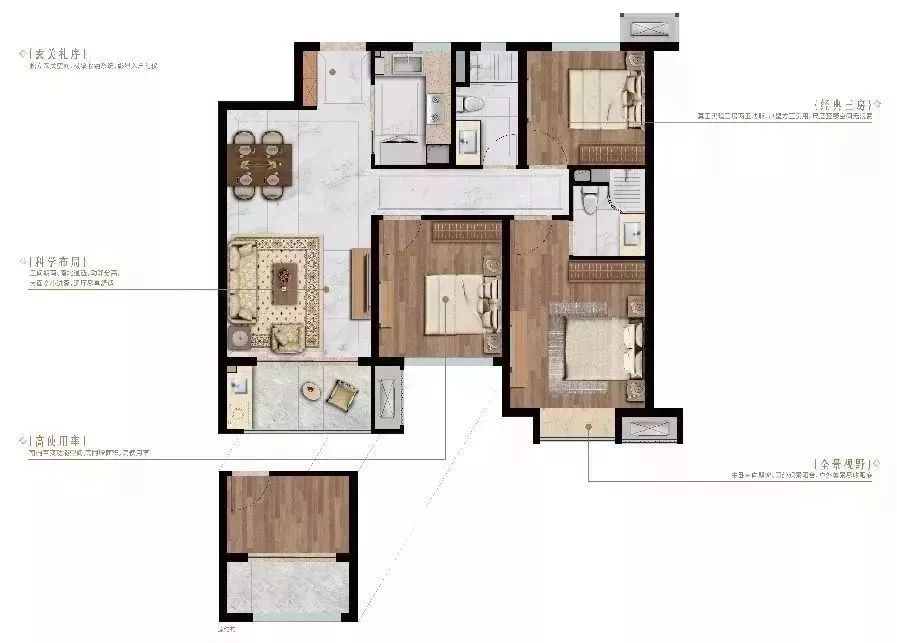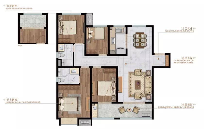 寒冷冬日,全家人所需的全屋内配置地暖,它有;炎炎夏日,烹饪时所需的凉霸,它有;入户时拎了太多东西,没办法拿钥匙怎么办?让人幸福感倍增的入户挂钩,它也有。