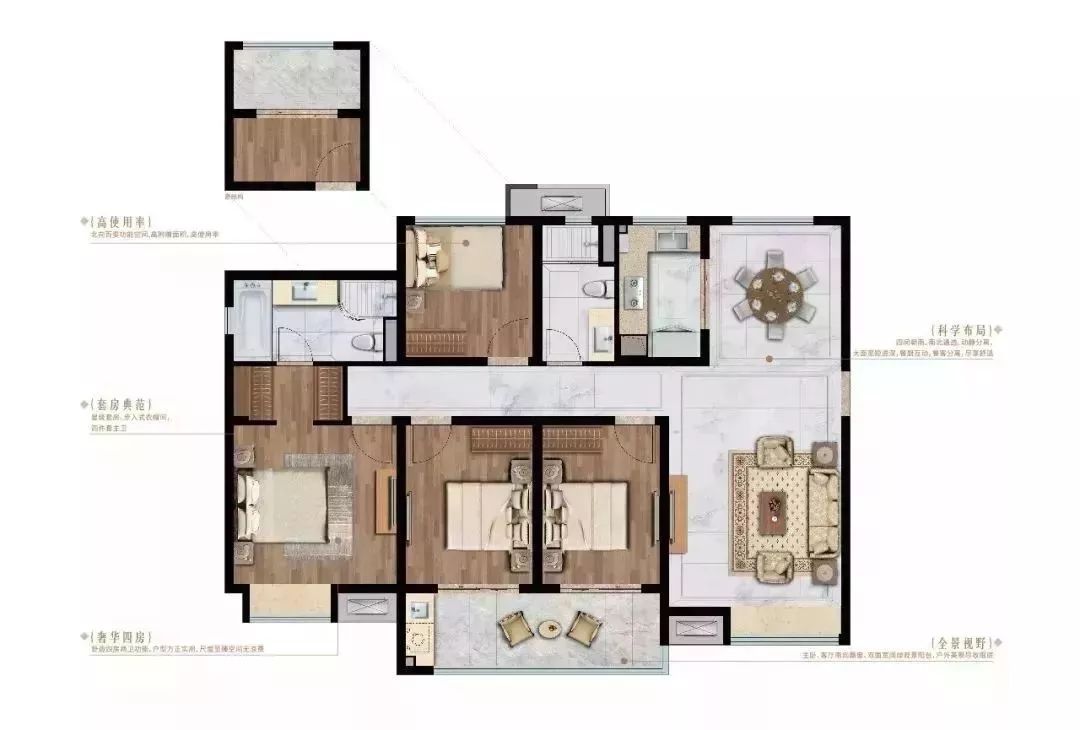 约143㎡户型更是达到了四开间朝南,双面宽大阳台的尺度。