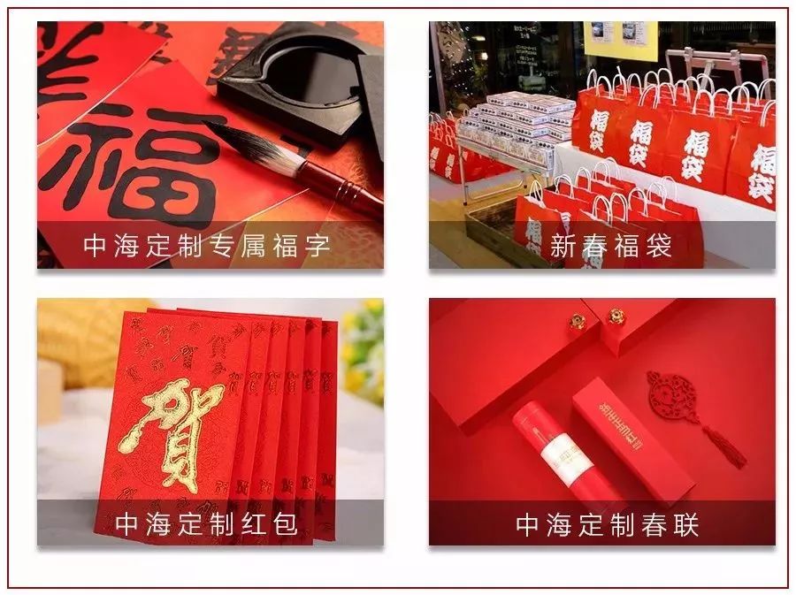 中海•燕矶听潮定制版精美福袋,含福袋、春联、福字、红包春节幸福小物,别犹豫,快来营销中心,把浓浓年味带回家。