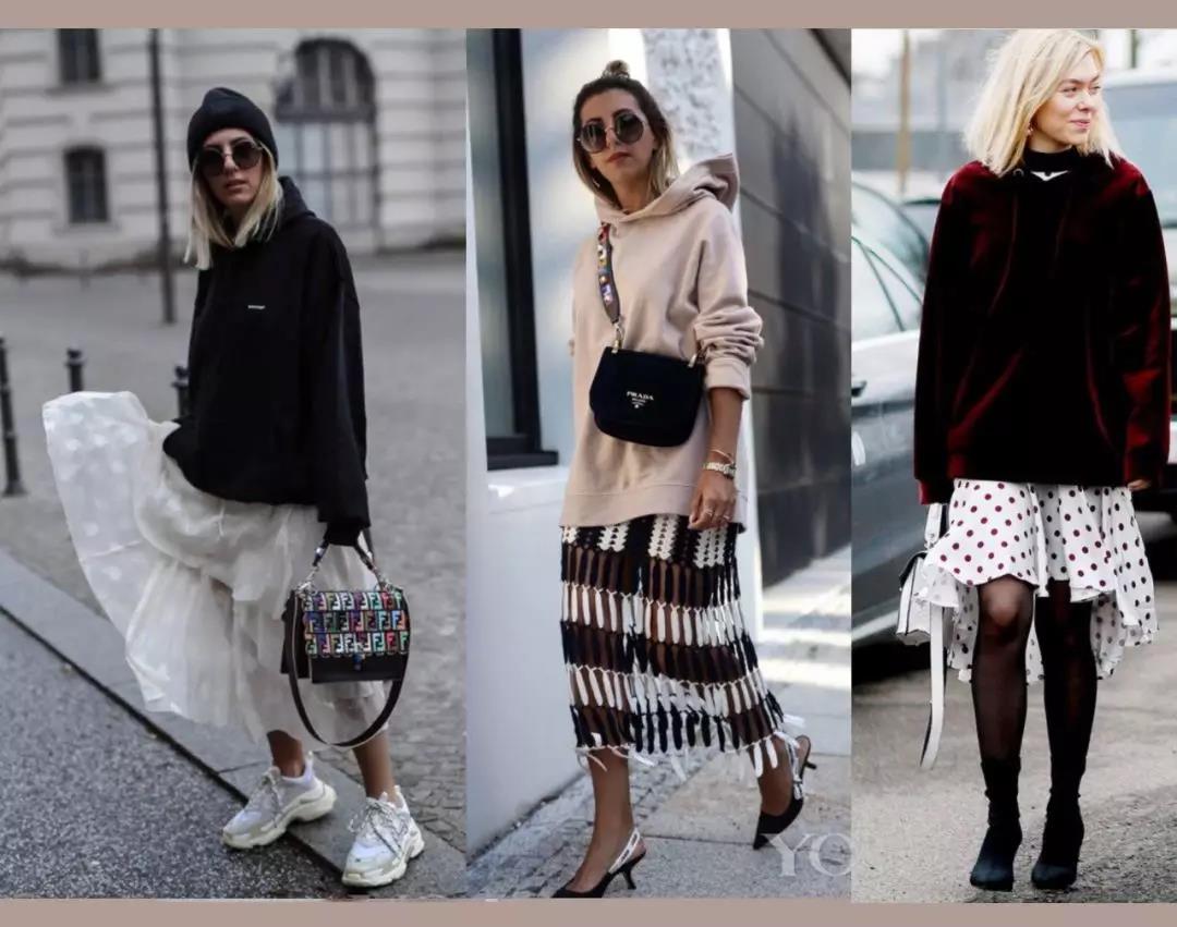 更有趣的是,卫衣不仅能驾驭各种风格的裙子,连鞋子都可以非常随意的搭,无论是运动鞋、高跟鞋还是靴子都完全,简直懒人必备。