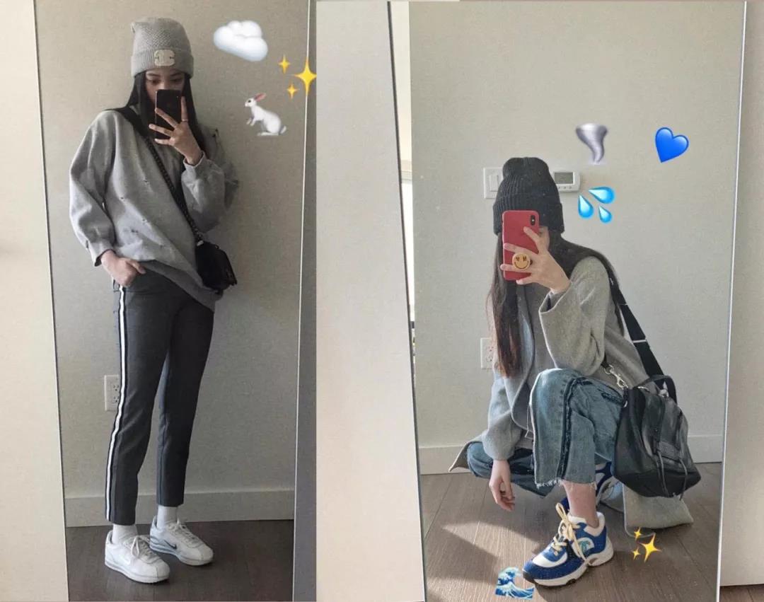 日常搭卫衣、针织衫、毛衣也是超级随性好看,正是现在流行的街头风。