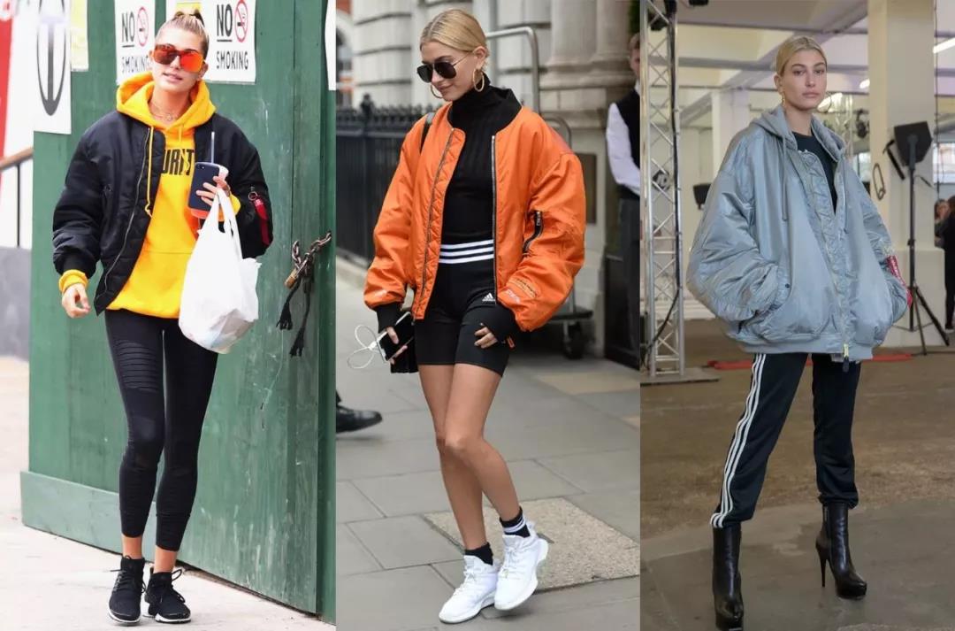 当然,如果怕冷,除了外搭大衣,加套一件Bomber jacket也是非常不错的选择,保暖显瘦又时髦,Hailey就很爱这么穿。