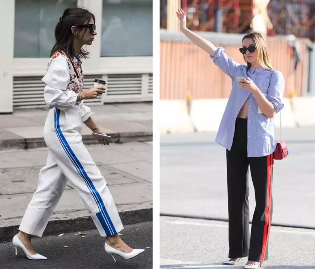 早几年就被时尚圈正名过的运动裤早就摆脱了校服的黑暗历史,自然是Athleisure的大热单品,随便搜一下track pants你就能看到各路达人的经典演绎,特别是侧条纹运动裤,已经成为一种新的穿搭经典公式了。高腰、修饰腿型的运动裤无论和衬衫、夹克、羽绒、卫衣、还是针织衫都能完美match。达人爱穿着去时装周,也是模特们的日常最爱。谁说运动裤只能在操场穿?