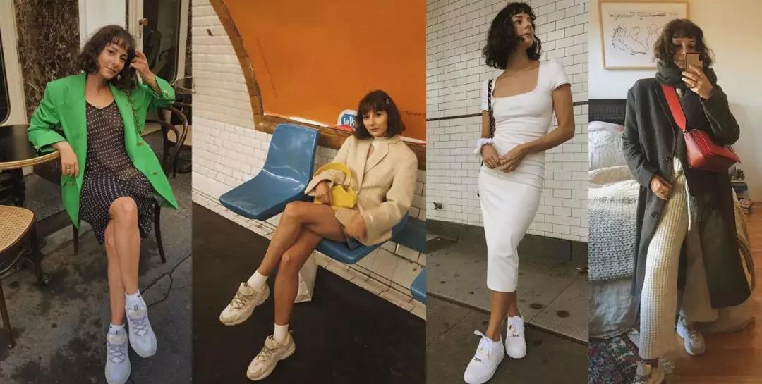 搭裙子也是没在怕的,半身裙、连衣裙都可以搭运动鞋。搭配简约风就是舒适性冷淡挂,搭配有设计感的裙子则更可以突出裙子的设计感。无论是文艺、街头还是小清新,都可以用一双运动鞋搞定,下图就是最好的例子。