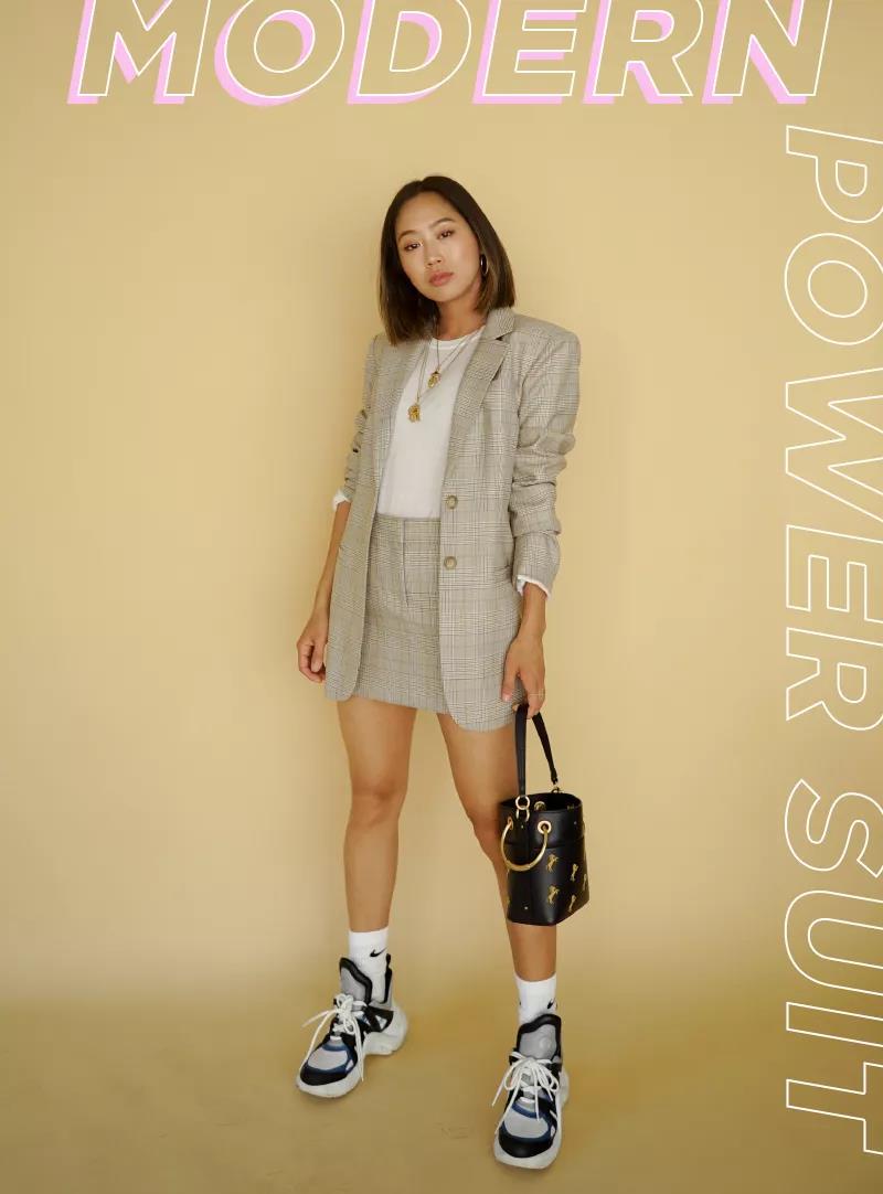 只有155公分高的时装编辑Alyssa日常最爱搭各种运动鞋,完全适合小个子有没有!运动鞋搭配西装可以很好地中和掉太过正式的感觉,搭小裙子则可以中和掉过于性感的气质,可以说是混搭圣品了。