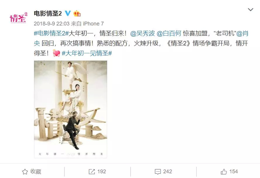 《情圣2》背后的主要出品方新丽传媒、万达影视以及新进的投资方淘票票、狂欢者电影制作等,显然因此对影片寄予厚望,敢于跻身春节档这一点本身也足以证明一众投资方的野心。