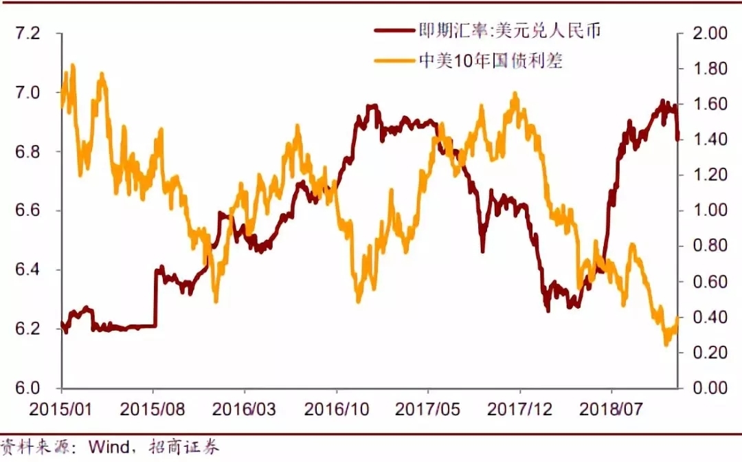 好在央行主动出手稳住汇率,国内没有受美联储加息外溢效应的过多影响,但从历史数据来看,中美利差与人民币大部分呈负相关,因此2019年人民币依然有一定的下跌压力。
