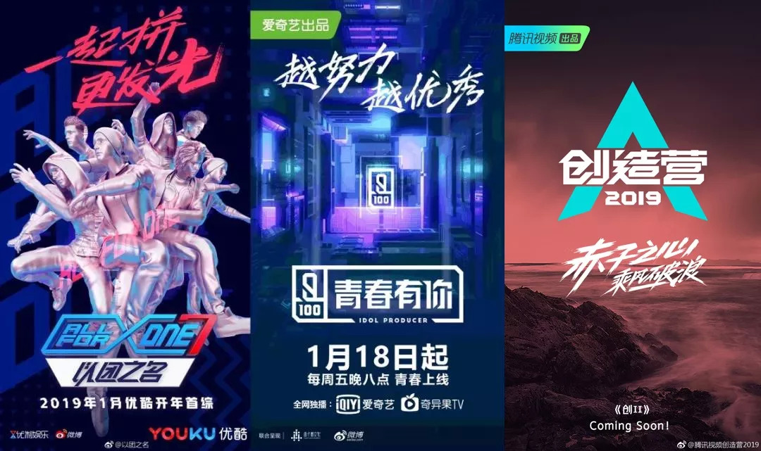 2018年,《偶像练习生》和《创造101》两档节目不仅将偶像养成模式推向了高潮,甚至承包了一整年的话题热度,成为大赢家。为了“趁热打铁”,2019年开年,优酷于1月17日上线了艺术研修教育类节目《以团之名》;爱奇艺《青春有你》在经历短暂的延期之后终在1月21日上线;腾讯视频也不甘示弱,1月22日上午10点,正式官宣了《创造101》第二季男团综艺《创造营2019》。
