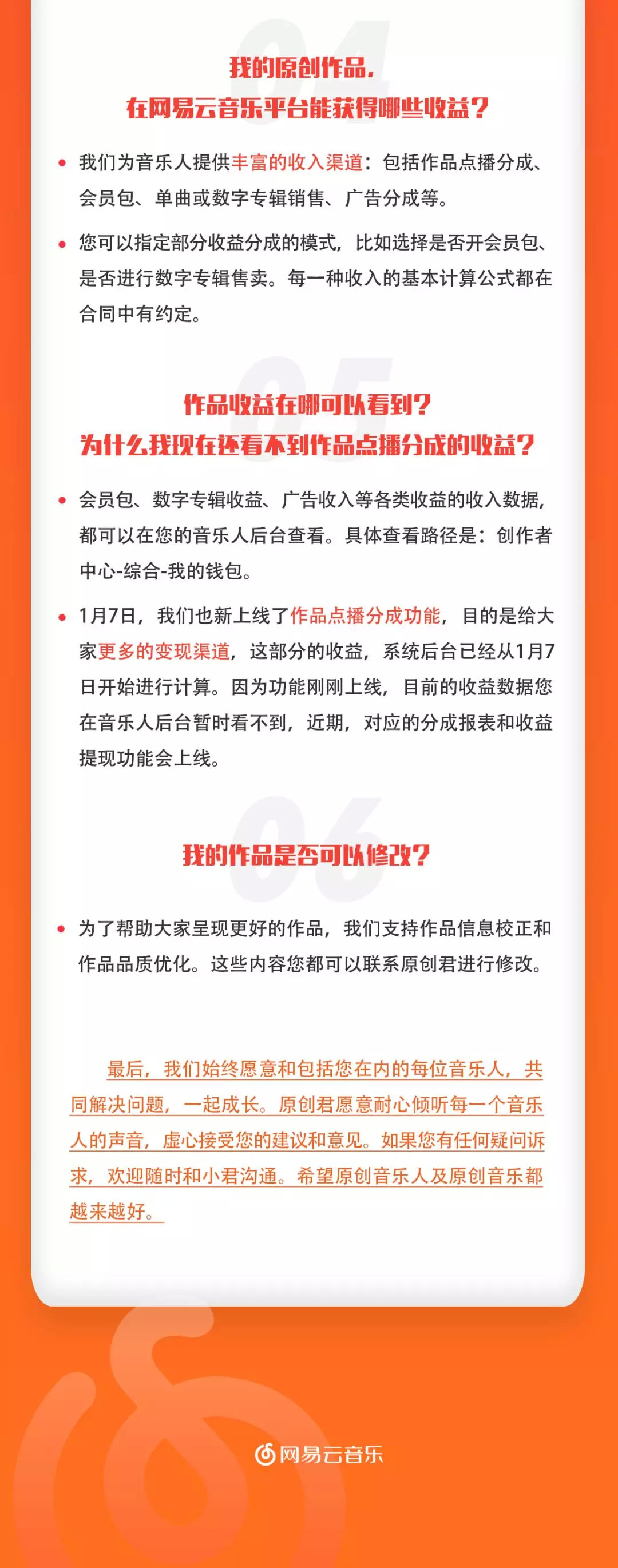 在23日中午,网易云音乐也通过站内原创君专栏,对音乐人的疑问进行答疑。