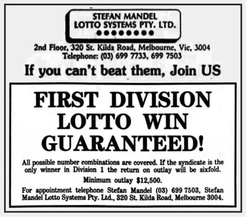 但是Mandel 的“频频成功”,也似乎引起了澳大利亚彩票部门的注意,他们曾通过多次修改法律来试图阻止他的行为。