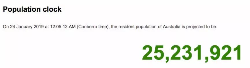 根据澳洲统计局(ABS)官网上即时更新的“人口时钟”显示,目前澳洲的人口约为2523万。