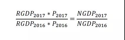 由于我们以2016年为基年,那么2016年的价格指数(GDP平减指数)便为1。下面我们利用下式来计算调整前后的2017年价格指数:
