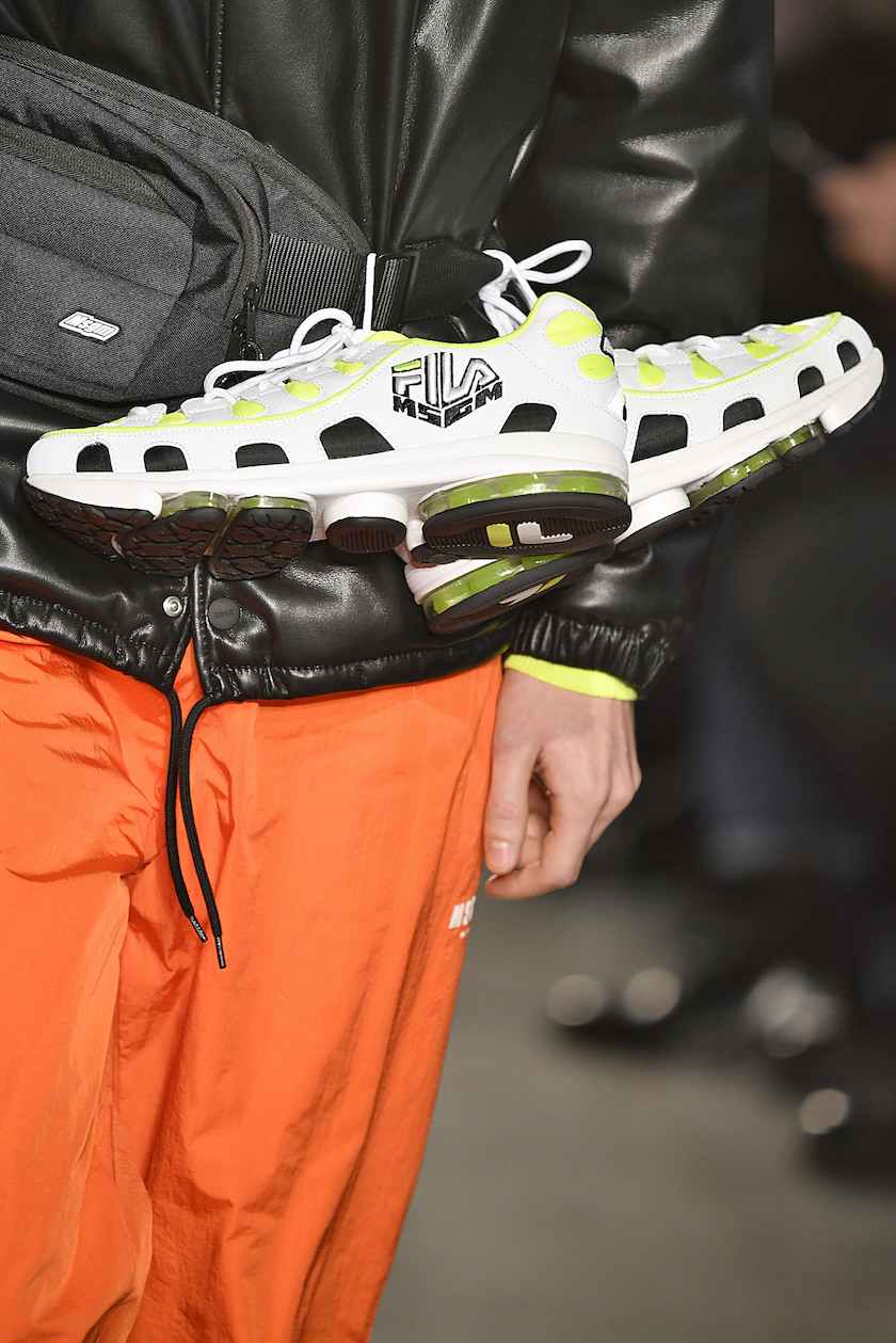 而MSGM品牌的设计师Massimo Giorgetti和Fila进行了联名合作,重新设计了经典的1992 Fila Silva运动鞋;