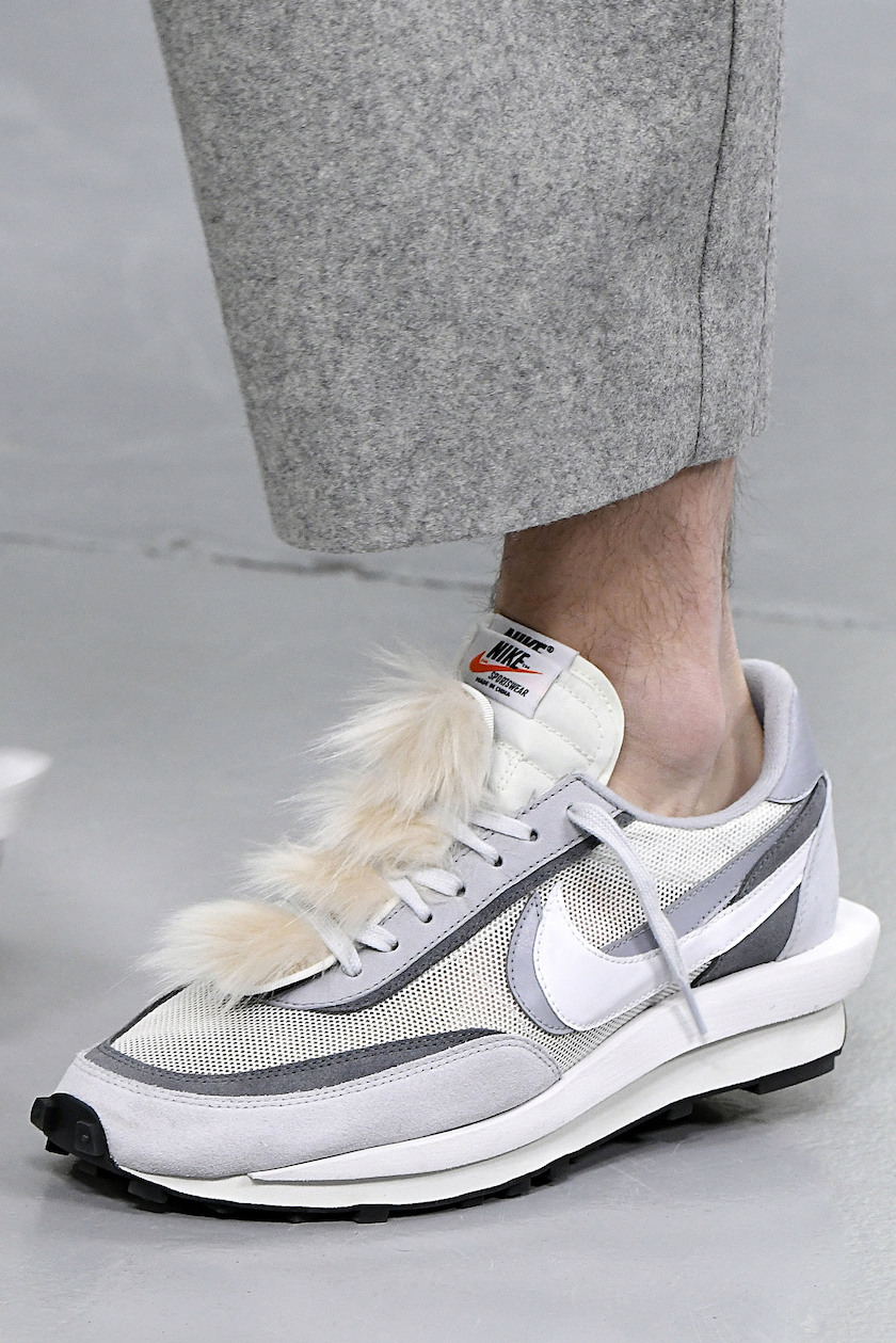日本时尚品牌Sacai的Chitose Abe给耐克鞋加上了人造皮草等一系列正装设计元素。“我想让耐克的运动中融入优雅,”设计师说。