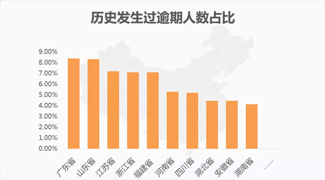从数据可以看到:浙江、江苏、广东等经济较好的省份“老赖”现象比较突出,同时正在发展中的河南、安徽、四川、湖南、辽宁、山东等地区的“老赖”也颇为泛滥。