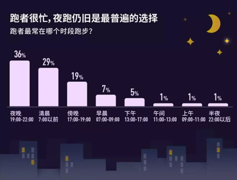 国内跑步媒体爱燃烧对2018年中国跑者做了清晰画像。爱燃烧大数据显示,中国核心跑者平均年龄38.3岁,其中,接近84%是男性,16%是女性;他们的平均年收入能够达到15.6万元;大部分已经成家(67%),其中的63%甚至有了孩子。中国跑者大数据统计,每月跑步距离达到70公里,清晨和夜晚时间段跑步人群最多;2018年跑步总消费为人均12287元,42%的钱花在了装备上,41%花在了报名、旅行和住宿上,剩下一部分中的16%用于训练的花销。