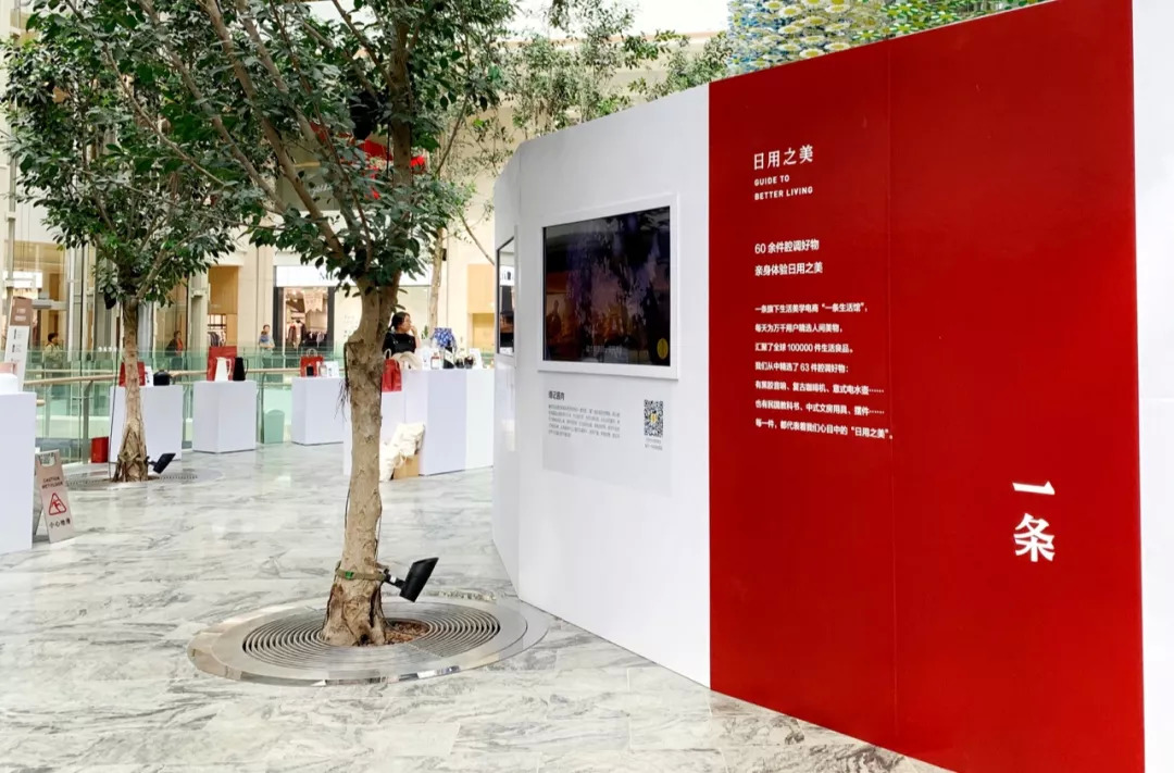 开业后不久,就有品牌方在此做活动——话题品牌一条举办了一场主题为“上海生活”的“日用之美”生活展,能看出主要是背景板与陈列柜结合的展示方式,呈现内容和产品。背景视频和文字介绍绕穹顶而设,展示道具则相对零散地分布在各个“分支”空间,能感受到整个活动是相对“简单”的。