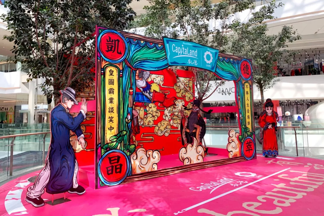 3、再深入一点讲,主题场景所展示出来的充满饱和度的画风,些许有东南亚风格,甚至让我一朋友以为这是凯德(新加坡开发商嘛)的原创新春主题。先不说从艺术画风专业层面这样的表述是否精准,但这个评价是我个人认为对一个第三方IP选择的最高褒奖。