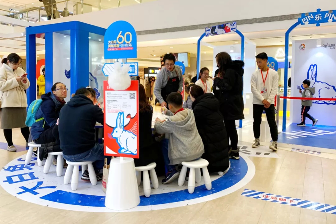 在新年季,商场同样结合第三方资源,带来了年味十足的大白兔60周年巡展上海首展。当然在场地搭建的技术层面,就没有太多可聊了,此活动更多在于年味的加成。