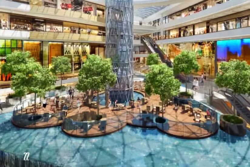 这是LuOne非常值得书写的楼层,之前在多篇探班文中几乎每次都免不了介绍其“绿洲”中庭所期望营造出的场景,在效果图中能看到初衷可能是这样的。