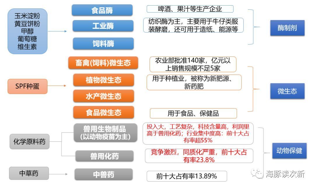 公司涉及产品种类较多,但总体分为酶制剂、微生态、动物保健品三大类,具体如下图:
