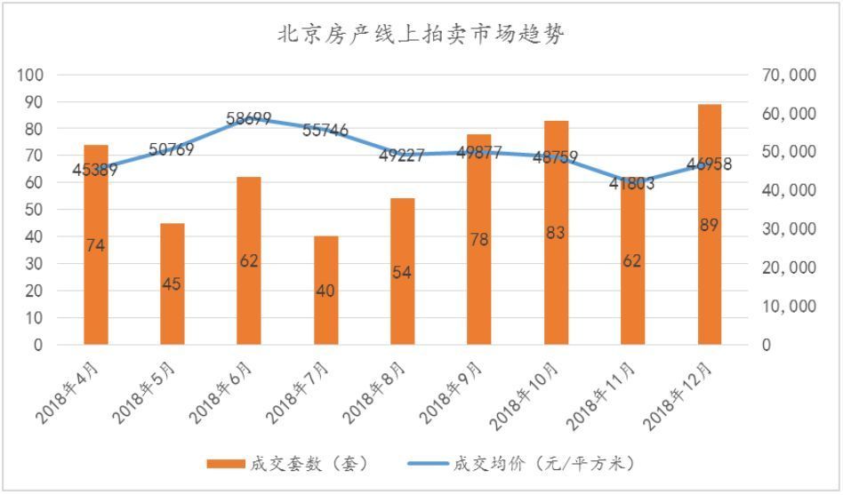 诸葛找房数据显示,2018年12月份北京线上拍卖市场成交89套,同时,12月北京线上拍卖市场溢价率为21.85%,连续3月上涨,处于较高水平,表明北京线上拍卖市场较热。不过,在全年来看,12月份北京线上拍卖市场并没有出现特别大的波动。
