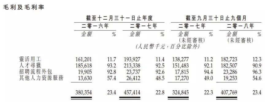 “灵活用工”低毛利走量,“猎头”业务毛利率超过90%
