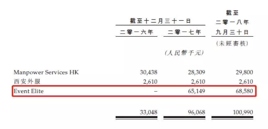2017年9月,公司就通过一家全资附属公司以6400万港元的价格收购了Event Elite 51%股权,这家公司主要在香港提供活动组织外包服务。财务资料显示,截止2018年9月30日,合并Event Elite产生的商誉账面值约6858万人民币。