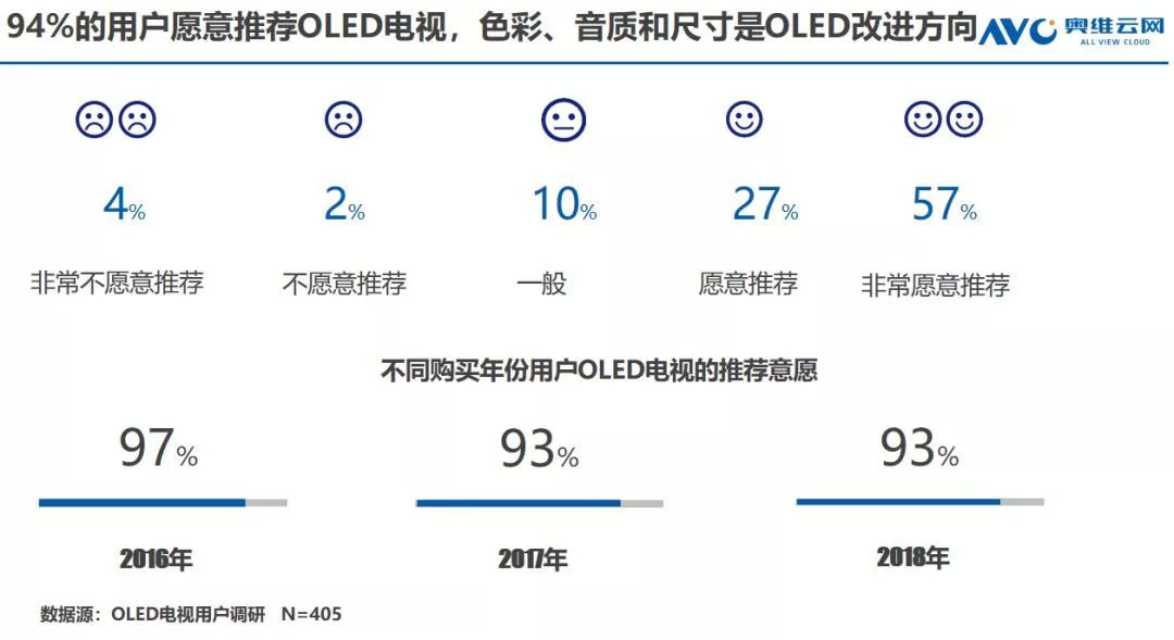 2018年10月,市场分析机构奥维云网(AVC)发表了《OLED电视用户调研报告》,报告显示: