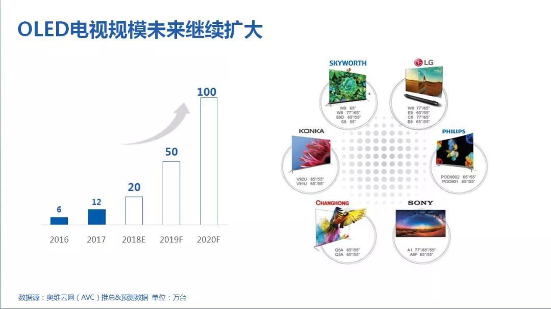 随着LGD广州8.5代OLED生产线于2019年投入量产,将极大的缓解OLED电视产能供给问题,这会极大刺激2019年OLED电视销量走势。调研机构中怡康认为,2019年国内OLED电视出货量有望达到36万台,而且未来今年还会延续高速增长模式。