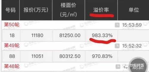 这个时候的开发商也无比疯狂。土地溢价率一轮轮升高。看到这个溢价率,当时的唯一感觉就是拍地的人真的吃太饱了。