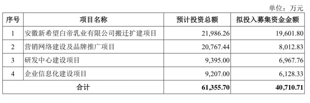 根据招股说明书披露的计划,本次发行募集资金扣除发行费用后,新乳业将依次投入以下项目: