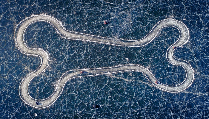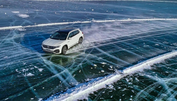 雪雾弥漫,冰雪飞扬,在镜泊湖厚达1米的冰面上,一汽-大众布置了“蛇形弯道”(Snake Winding Road)、“海螺弯道”(Vortex Road)、“8字绕弯”(Double Winding Road)、“狗骨头”(Dog Bone Road)四个专业科目和两条知名国际赛道。
