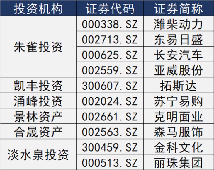 除此之外,淡水泉投资等百亿私募也纷纷展开行动。这其中,淡水泉投资先后调研了金科文化(300459.SZ)和丽珠集团(000513.SZ)。凯丰投资、涌峰投资、景林资产、合晟资产则分别调研了拓斯达(300607.SZ)、苏宁易购(002024.SZ)、克明面业(002661.SZ)以及森马服饰(002563.SZ)。
