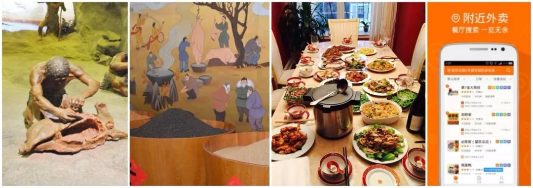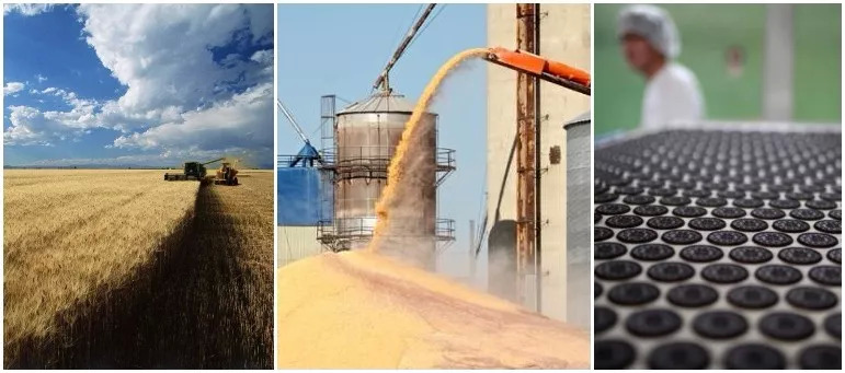 (现代农业、食品加工和饮食体系的典型:左-小麦大农场,中-面粉车间,右-饼干车间。产量是丰富了,食物是便捷了。可是原本的食物味道不再那么吸引人,怎么办?靠食品加工业或餐饮业的重油、重糖、添加剂。)