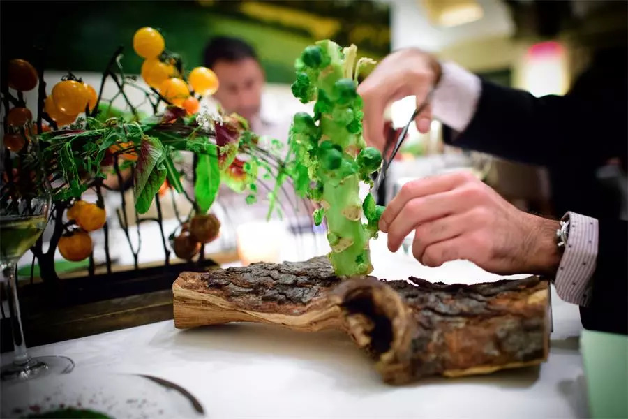 餐厅的菜肴都是根据每天新鲜采摘的食材来定,比如某段时间芦笋集中上市,那么餐厅的很多菜都由芦笋来做材料。这样的做法并不是只是为了环保和低碳,还给了我们重新认识食物的机会。我们现代的餐饮方式往往只取食材最好看、最好吃的部分,而丢掉了很多反而更有营养的部分。比如萝卜皮中含有相当多的异硫氰酸酯类物质,它是防癌作用的关键部分;茄子皮富含花青素、果胶和类黄酮;甘薯和番茄的皮富含抗氧化成分和膳食纤维,也有一定防癌功效;青椒和冬瓜的白芯维生素C含量特别高。