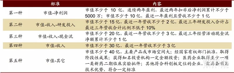 2018 年 12 月 1 日上交所召集会员理事、监事召开的座谈会,据新浪财经报道,在研讨中,科创板发行上市标准或从五种维度来看。前四种是市值与收入、净利润、研发投入、现金流的组合,均在战略新兴板中出现过,第五种维度比较新也相对比较模糊,要求市值不少于 40 亿,主要产品或市场空间大 。