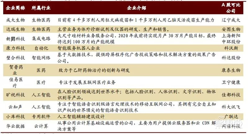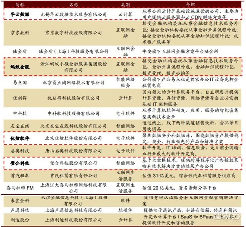 ▲有望登陆科创板的16家互联网、人工智能、软件等科技型企业