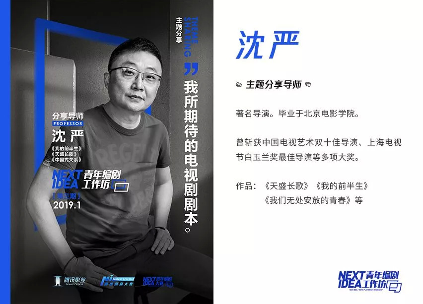 各位都是在电影方面的精英,都是我们电影的未来,但是你们将会面对第一个问题就是将来靠什么生存下去?我拍了这么多的戏,仍然急需要我想要看到的剧本、我能拍的剧本、有机会成就头部剧的剧本。我基本上看了头三、五集之后会对剧本有一个基本的评判,主要有两个标准: