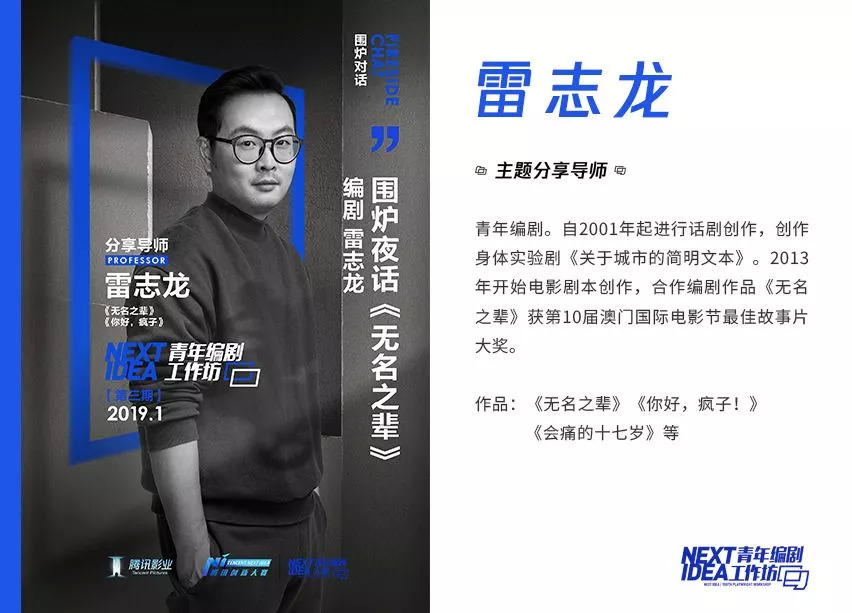 1月24日,第三期NEXT IDEA青年编剧工作坊在北京腾讯汇如期举办。管虎、戴锦华、王红卫、康洪雷、沈严、温豪杰等著名电影人将亲临现场,面向31位学员传道授业、答疑解惑。
