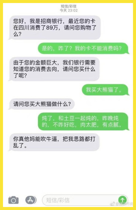 这种时候,只要我们将计就计打己尽情地瞎编,乱他的计划,保准就能让骗子接不上话,露出马脚。