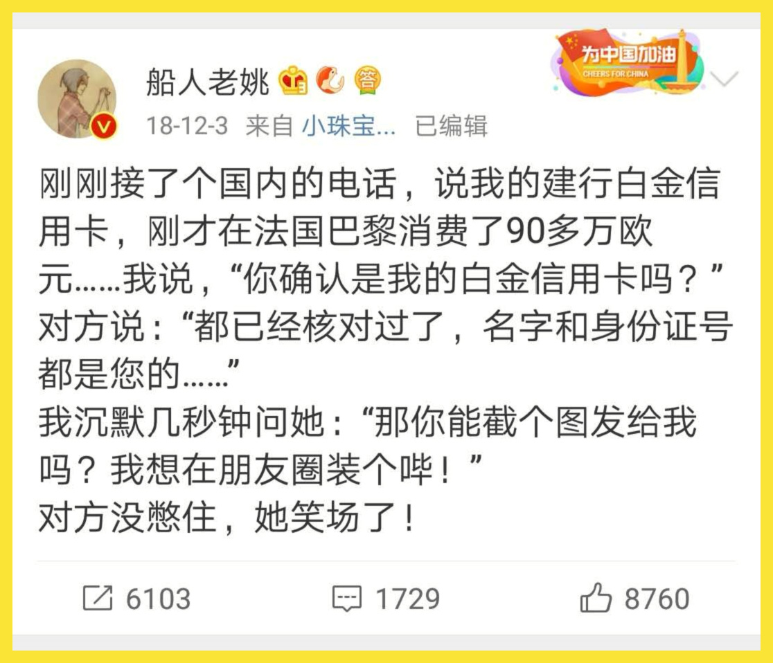骗子的常见套路“你的家人出事啦”,无非利用你的关心则乱,让我们迅速掏钱。